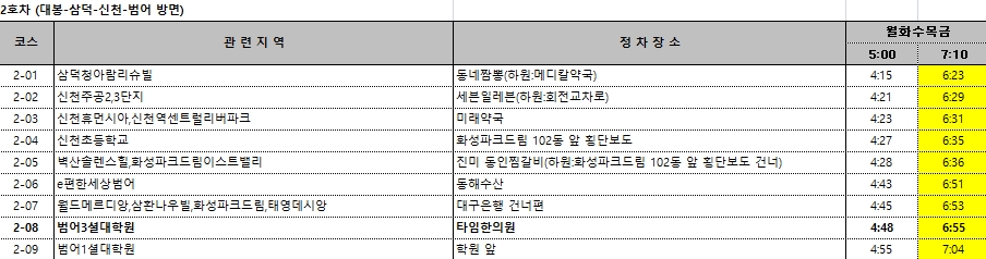 - 2호차, 5호차 2교시(7시)수업반 탑승시간 당겨짐