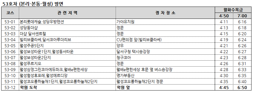 53-11 월상자이,태왕아너스베스트 > 51-10 (차량, 탑승장소, 시간변경)