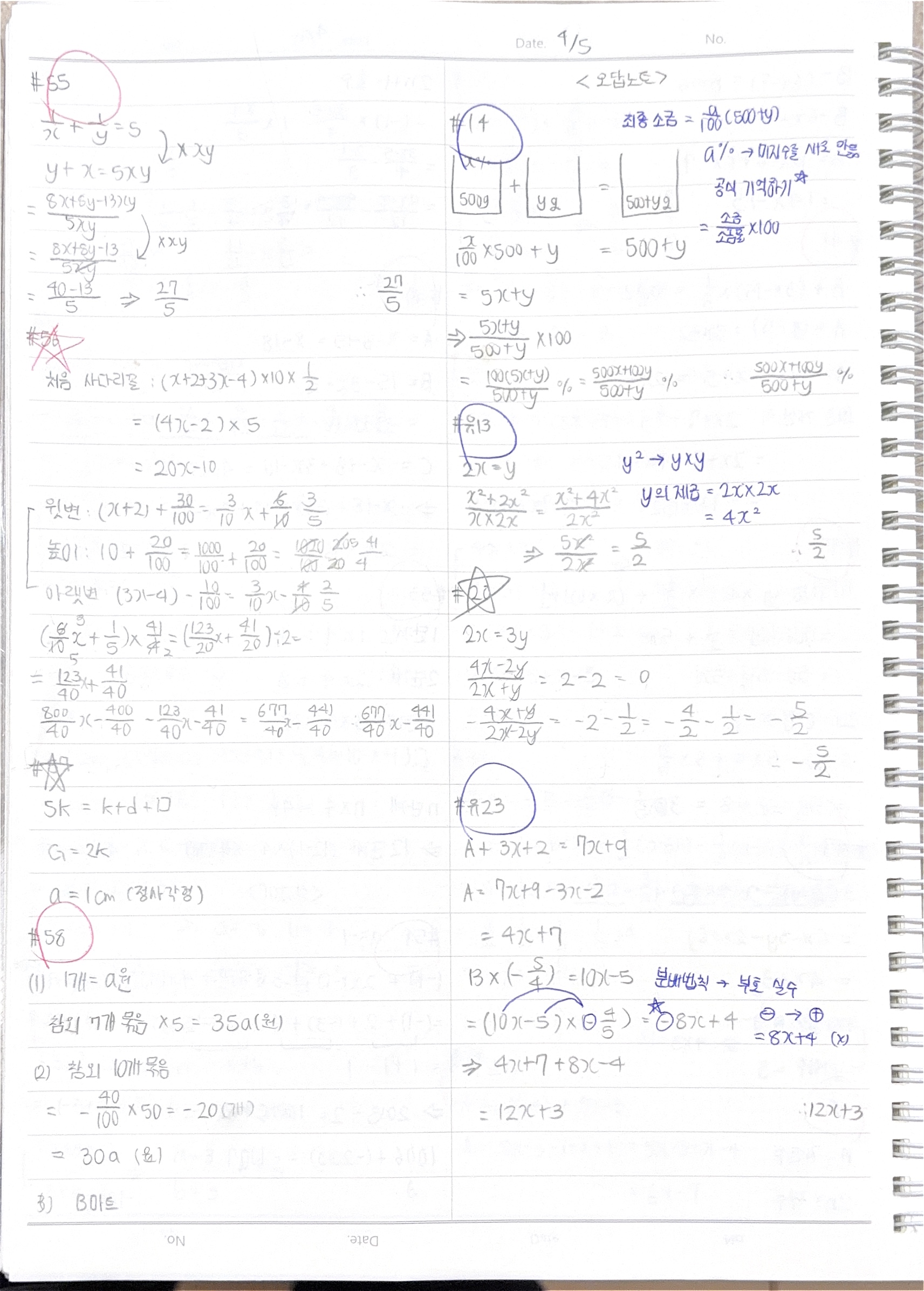 학생들은 깔끔한 풀이쓰기가 습관이 될 수 있도록 최선을 다해 노력해주세요.