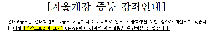 [겨울개강] 중등 강좌안내